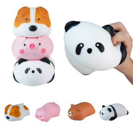 Introducing Easy Sqweezy Snugglies by ORB are the irresistibly soft, stretchable squishies that are ready to steal the spotlight in the 2026 squishy craze! Featuring an adorable assortment of a panda, pig, and lovable puppy, these ultra-plush, super-satisfying characters are made to be squeezed, stretched, and snuggled again and again.