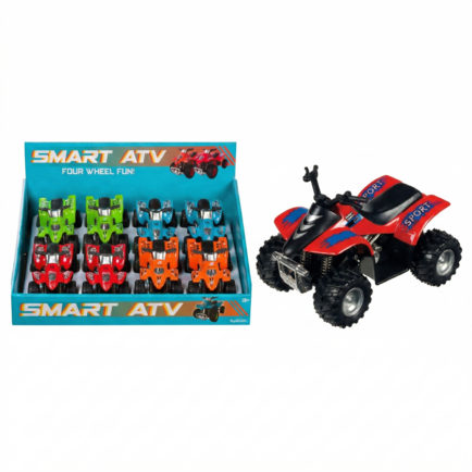 This 3.75 inch ATV has realistic details and pull-back action. Assorted styles. 3yr+