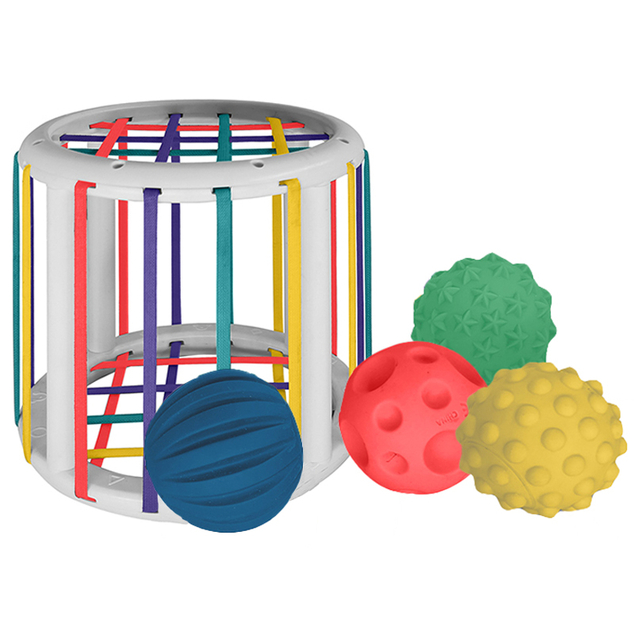 This new sensory toy promotes problem solving and spatial awareness as children learn how to take the sensory balls from the stretchy cage.