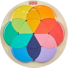 Color wheel-themed wooden puzzle for preschool-friendly mix-and-match puzzle play