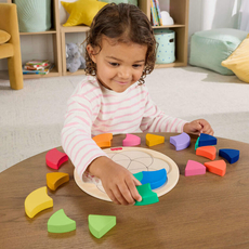 Kids can explore color mixing and matching through fun shape-sorting play with this Wooden Color Wheel Puzzle from Fisher-Price. Made with wood from Forest Stewardship Council-certified sources (FSC-N004566), this 18-piece puzzle features brightly colored chunky pieces decorated with non-toxic, water-based paint and designed just right for small hands to grasp and place into the tray. Etched guidelines on the storage tray help kids sort each shape piece into its corresponding slot for rewarding independent play. Colors and decorations may vary.