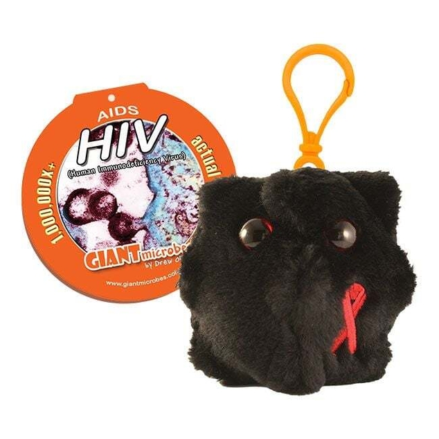 HIV mini microbe (3") with mini-tag and key chain clip.
