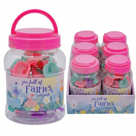 Enter a magical realm with Toysmith Jar Full of Fairies. Each jar contains a delightful assortment of fairy figures, perfect for enchanting play and inspiring creative storytelling. 20 pcs per Jar with a random assortment of 6 figure styles.