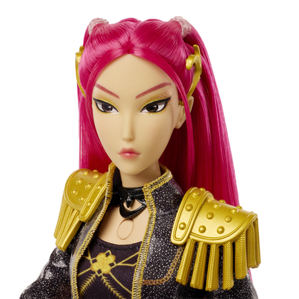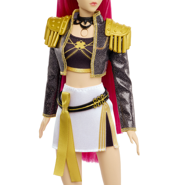 Mira doll is ready to take the stage and show the world what she's made of in a true-to-movie look from her "Golden" performance. She can sing the smash hit "Golden" solo or as a group with the other HUNTR/X members, Rumi and Zoey! This singing doll is ready to conquer the stage and seal the Honmoon with 5 posable joints!