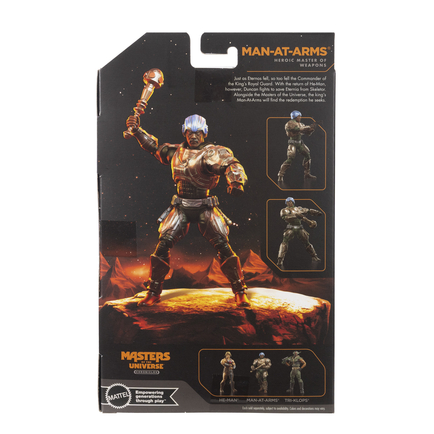 This Chronicles Man-At-Arms celebrates the 2026 live action Masters of the Universe movie and the dramatic battles of good versus evil at 6.5-inch scale. This action figure has collector-level detail and movie-accurate design, including the likeness of actor Idris Elba. The enhanced 30 points of articulation deliver deluxe posability, The Master of Weapons comes with his signature mace, as well as a blaster and an extra set of hands. Deluxe eye-catching packaging provides display options in or out of the box. Colors and decorations may vary.