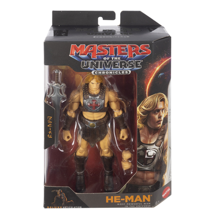 This Chronicles He-Man action figure celebrates the 2026 live action Masters of the Universe movie and the dramatic battles of good versus evil at 6.5-inch scale. This figure has collector-level detail and movie-accurate design, including the hero's armor and weapons and the likeness of actor Nicholas Galitzine. The enhanced 30 points of articulation deliver deluxe posability. The Most Powerful Man in the Universe comes with his iconic Power Sword and an extra set of hands to re-enact his signature moves. Deluxe eye-catching packaging provides display options in or out of the box. Colors and decorations may vary.