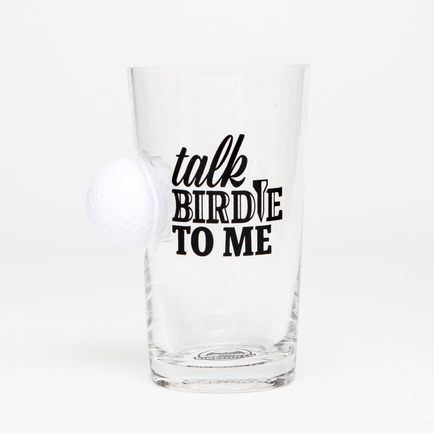Calling all golf lovers! What's better than cracking a cold one? Cracking a cold one in our golfing glass! Enjoy your favorite beer in this fun pint glass. It is made of high-quality glass and can hold up to 16 ounces of your favorite beverage. The sporty glass features a cheeky "Talk Birdie To Me" phrase, and for an added humorous touch, a small golf ball is wedged and stuck in the side of the glass! This funny glass is a great gift for anyone who loves golf, beer or sports. It makes a perfect addition to any barware collection and will be sure to get some laughs when you are drinking with friends! The glass is super easy to clean, too. For best results we recommend hand washing it, drying, and setting it aside for the next use. The sturdy construction will ensure that the glass lasts for years to come, while still being lightweight enough to hold comfortably in your hand. This funny golfer beer glass is perfect for any occasion, whether you are drinking on your own or with a group of friends or family! We hope you enjoy the golfing glass as much as we have creating it! Kick back, relax, and enjoy an ice cold beverage with your new sporty glass! Cheers!