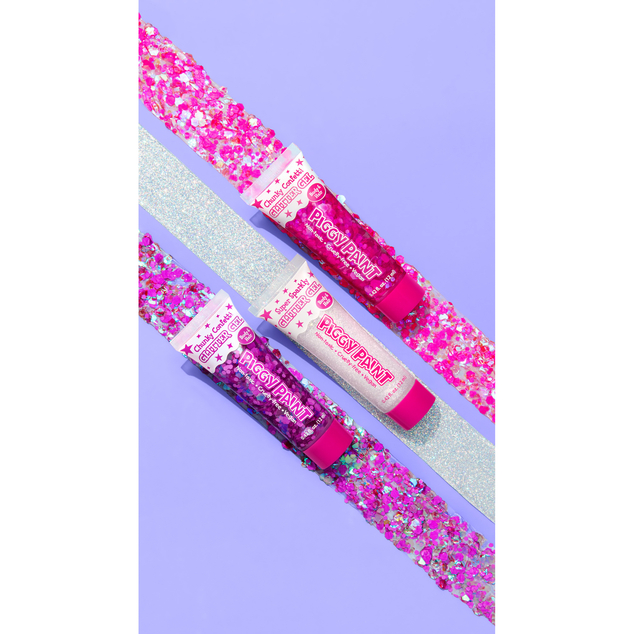NEON PURPLE Chunky Confetti Glitter Gel adds bold, chunky neon sparkle to your face, body, and hair! This mess-free, long-lasting Glitter Gel glides on easily with fingertips for instant glitter & glow. Made with a non-toxic, cruelty-free, and vegan formula, it’s sparkle fun you can feel good about!