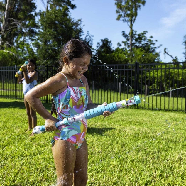 Perfect for the ultimate water fight, the Confetti Water Cannon is approximately 20 inches long with a comfortable foam handle so you can get a grip while you super soak your friends and family. Now Featuring Gordon the Shark and Sunny the Bee!