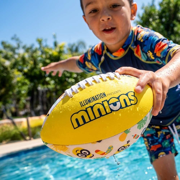 Soft neoprene water football with an inflatable inner bladder for lightweight, pack-and-go play. Featuring Minions artwork and designed for a comfortable grip in and out of the pool.