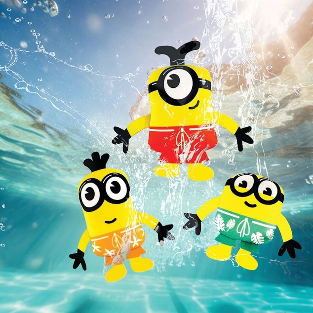 Soft, weighted neoprene dive toys designed for underwater play. Featuring Minions characters, this 3-pack adds classic Minion mischief to pool games and swim practice, while the flexible material offers a comfortable grip.