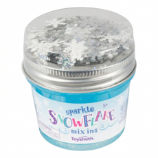 Each jar of Snowflake Mix-Ins includes slime and holographic glitter confetti shaped like sparkling snowflakes. Plastic container includes a resealable twist top. 1 container holds 5.5 ounces of icy blue, glitter slime that is nonstick. 12 Snowflake Mix Ins per case.