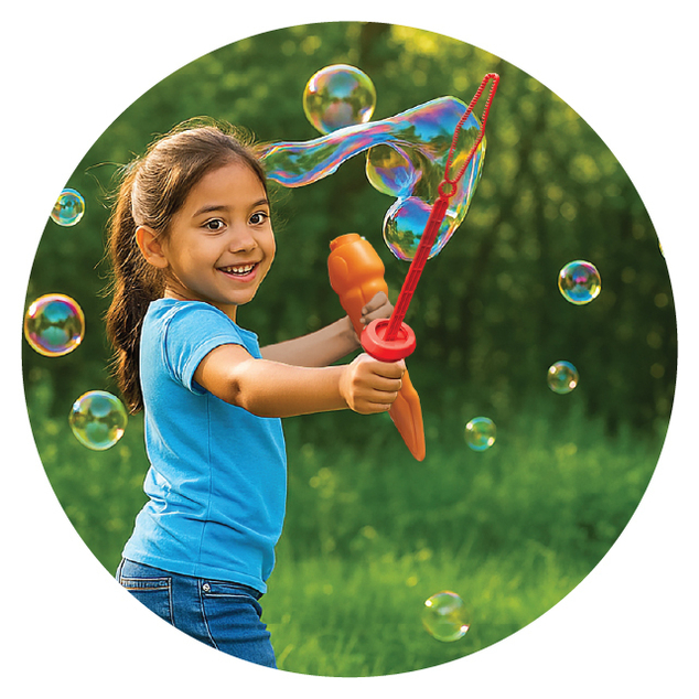 Every bottle comes pre-filled with premium, non-toxic, plant-based bubble solution and includes a built-in wand for instant play. No extra tools required. Simply open and start bubbling.