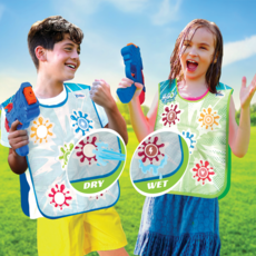 Gear up for head-to-head water blasting and color reveal action with H2GO! Splash Tag. Blast your opponent’s vest and watch the 5 splash zones instantly change colour when hit for clear, real-time scoring. First player to reveal all zones wins the showdown. No guessing who got tagged and no electronic sensors required. As the vests dry, the colours fade and reset in about 3–7 minutes depending on the weather, ready for the next round of Splash-to-Win backyard water battles.