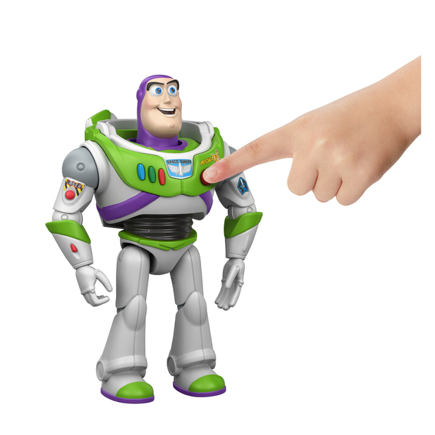 This Buzz LIghtyear Interactables figure, inspired by Disney and Pixar’s Toy Story 5, brings the fun and friendship of the movie home. He not only speaks phrases from the movie but also recognizes other figures in this collection by name and converses with them! Whether he’s reliving past Star Command missions or joining the Toy Story gang for some fun, Buzz’s movie-related dialogue can inspire creative play. He’s got something to say to everyone - just press the large red button on his Space Ranger uniform and listen. The 7-inch tall talking figure is also highly posable and has a new face design with a classic Buzz expression. Colors and decorations may vary.