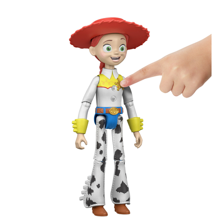 - Pose-ready! This Jessie figure has multiple movable joints and movie-authentic appearance so, when she’s not talking, he can strike a ready-for-yodeling pose in a Toy Story display.