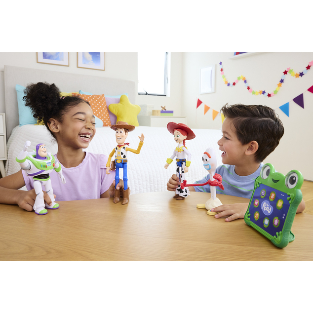 - Group talk! When you put Jessie and other Interactables figures facing each other and press one of their buttons, they recognize each other and have conversations! Each figure sold separately.