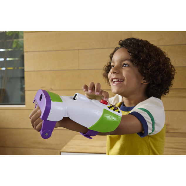 Star Command, come in, Star Command! With the Space Ranger Laser Gauntlet, the fun of Toy Story 5 and Buzz Lightyear’s space adventures comes home. Press the button on the top of the gauntlet to activate laser shots, then hold down for a perfectly timed explosion – projected onto surface with sounds and vibrations to simulate the galactic attack! With 35+ sounds, it is equipped for all Space Rangers to take off on their own epic adventures. Perfect for Toy Story 5 fans of all ages 3 and up. Colors and decorations may vary.