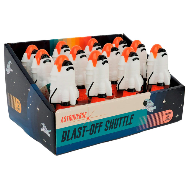 Countdown to surprise with the Astroverse Blast-Off Shuttle! This spring-powered pop toy sticks to smooth surfaces —press it down, wait, and watch as it suddenly blasts into the air. Simple to use and full of suspense, it delivers classic cause-and-effect fun with a space-inspired twist. Small toy, big lift-off moments.