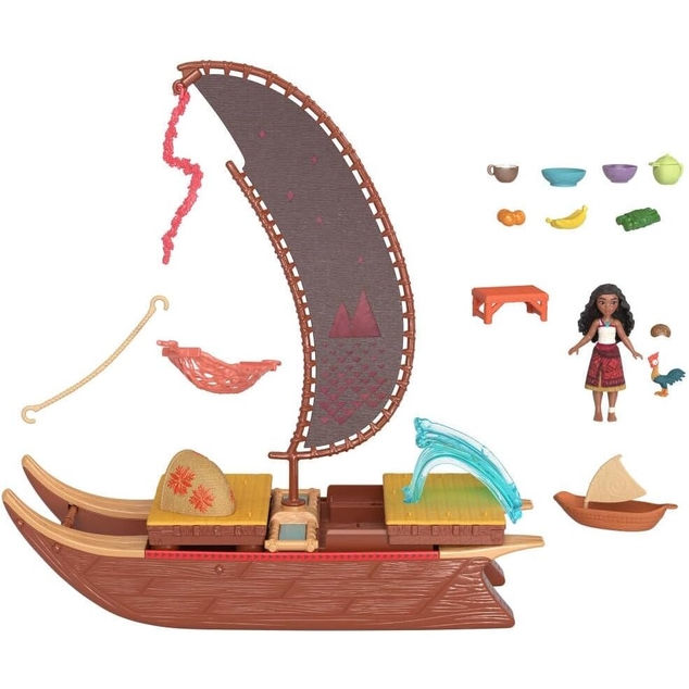 Inspired by Disney’s Moana 2, the theatrical sequel, kids can imagine exploring beyond Motunui with Moana's Adventure Canoe playset complete with Moana small doll and her friend, Heihei, the chicken.