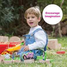 Magnetic box enhances play when opened through thematic print inside and outside.
