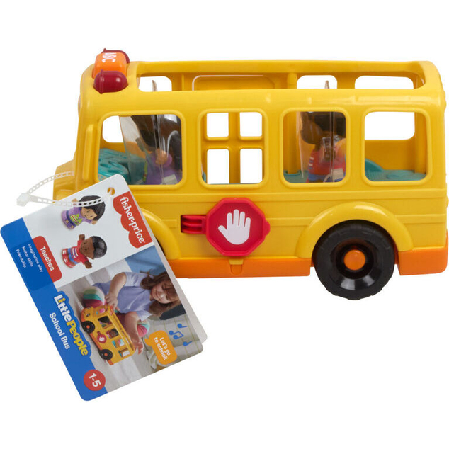 Get your toddler excited for their future first day of school with the Little People School Bus toy from Fisher-Price. This push-along musical toy vehicle features fun lights, songs, sounds and phrases, plus a fold-out stop sign and door that opens & closes for realistic pretend play. The School Bus comes with 2 Little People figures and seats up to 4 figures for endless, preschool-friendly storytelling. (Additional figures sold separately and subject to availability.) Use the globe button to select a language: English, Spanish, French, or Brazilian Portuguese.
