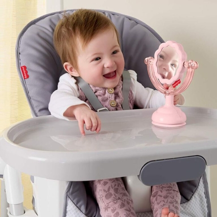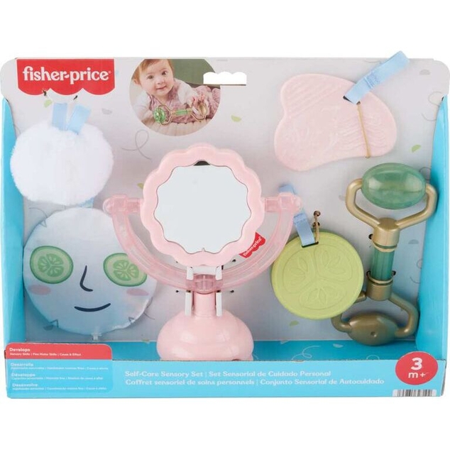 Baby can get in on the GRWM trend with this Mini Me Moments Self-Care Sensory Set from Fisher-Price. Featuring classic newborn activity toys styled as familiar grownup self-care items, this 6-piece gift set includes a rattle face roller, squeaker puff, clacker cucumber slices, chewy teether gua sha, double-sided crinkle face mask, and a spinning mirror. Little ones can "treat" themselves to engaging sensory play that also helps foster grasping, curiosity, and cause & effect. Colors and decorations may vary.