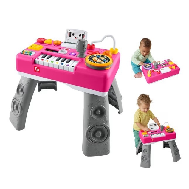 Little music-makers can work their fine motor skills while rocking out to Puppy's freshest beats with the Laugh and Learn Mix and Learn DJ Table activity center from Fisher-Price. This interactive learning toy and activity table features a piano with 3 ways to play, plus 12 fine motor activities and 3 Smart Stages learning levels to keep the learning fun going as your baby grows. Keep the table legs off for sit-at floor play, then attach when your baby is ready to stand up and DJ.