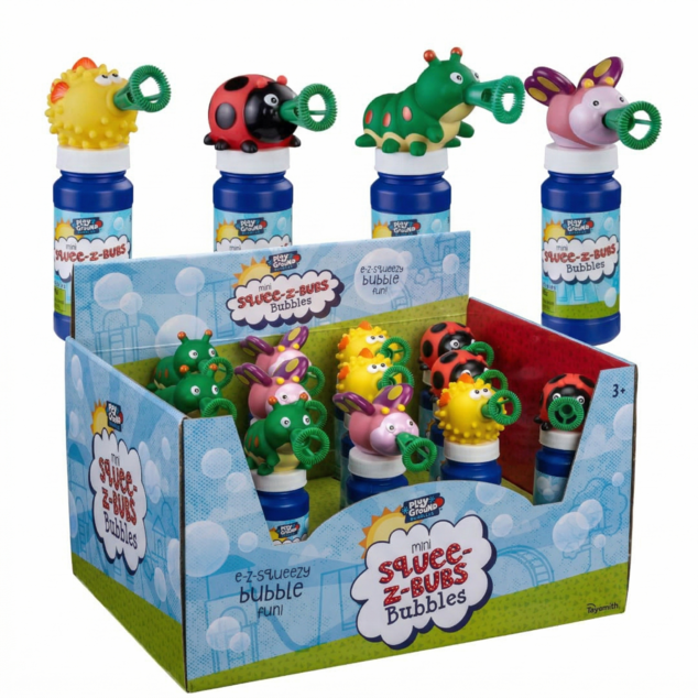 A mini Squee-Z-Bub is combined with a 4 oz. bottle of bubbles to create this cute, bubbling combo. Assorted ladybug, blowfish, caterpillar and butterfly. 3yr+