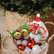 Deck the halls with microbes! Our new Testicles ornament is festively dressed up for the holidays! Special golden edition Testicles adorned with embroidered snowflakes and jingle bells. Includes gold loop for hanging on the tree.