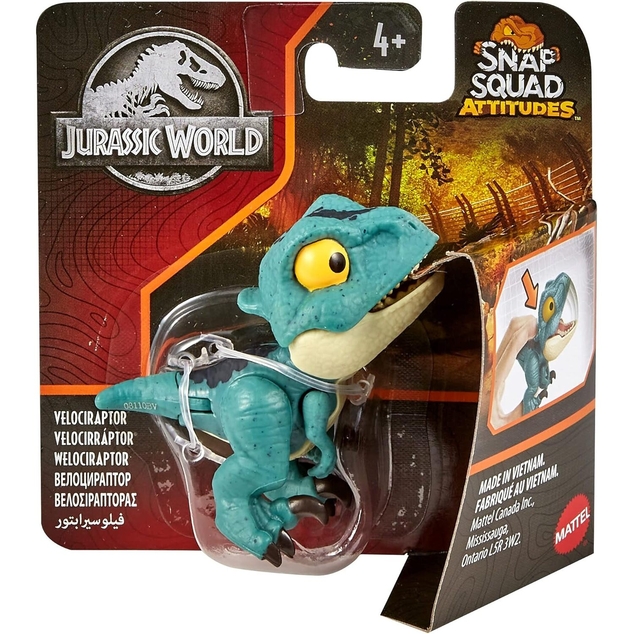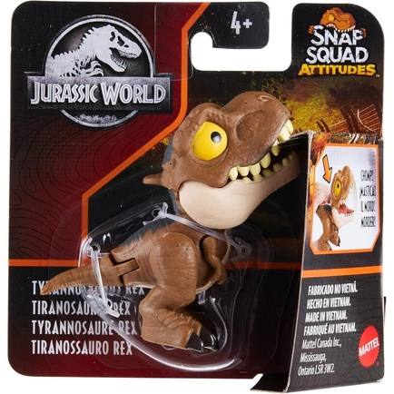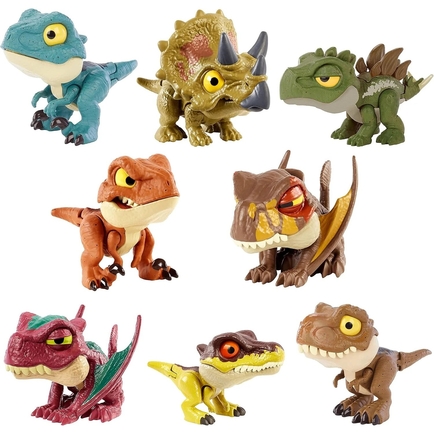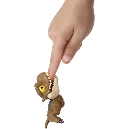 Each Jurassic World Mighty Little Biters collectible dinosaur evolves from cute to angry with one easy motion. Push down on the head to open the mouth and see the top teeth extend out aggressively while the eyes change from a cute, normal look to a fierce attacking look. Fidgeters will have great fun changing back and forth. Each toy is about 3 inches long and 3 inches tall and popular species are included like T. rex, Velociraptor and Ankylosaurus. Even the packaging has 'bite' marks. Each Mighty Little Biter sold separately, subject to availability. For dinosaur fans ages 4 years and up, especially Jurassic World fans.