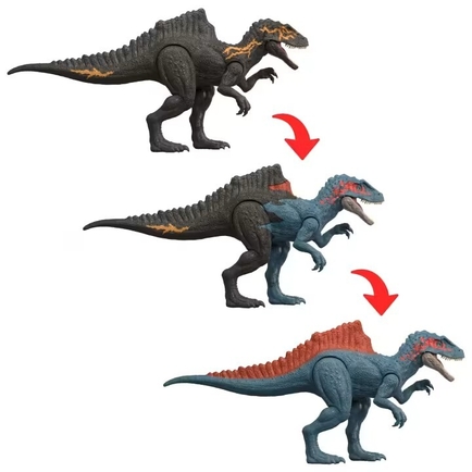 These Jurassic World Dino Reveal Deluxe toys offer tear-away fun and color change excitement with their all-new PEEL AND REVEAL design! Release the dinosaur from its rip-away box to uncover the figure in its 'before' design. Enjoy play with the dinosaur with this full color design. Then, when you're ready for a totally different look, PEEL off the mutated 'chemical layer' of the figure and REVEAL completely different 'after' colors! Each dinosaur figure is at least 11 inches long and 5 inches tall, with movable arms and legs for battle play. Suitable for dinosaur fans ages 4 years and up.