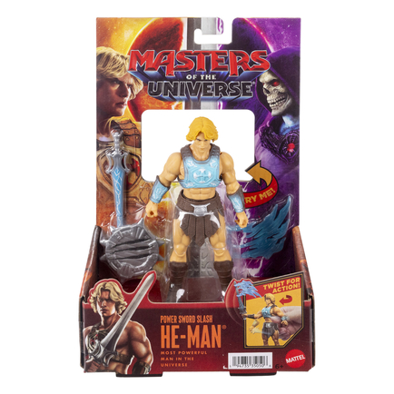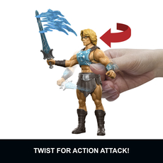 Key accessory included! The Most Powerful Man in the Universe comes with his signature Power Sword. Placed in his hand, it amplifies the twist-and-release battle move into a Power Sword Slash.