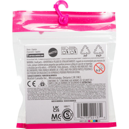 Kids can dress Barbie doll for any occasion with this fun and trendy collection of shoes! Doll not included.