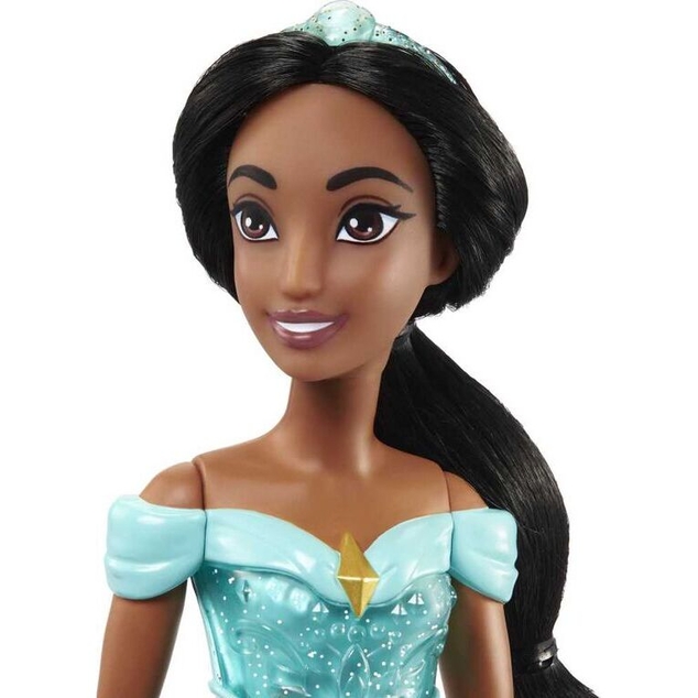 Meet this Princess Jasmine doll, inspired by the generous and daring heroine from Disney's Aladdin. This posable fashion doll is shown in a sparkling outfit and accessories that include shoes and a tiara. In her signature look from the movie, this Jasmine doll is ready for any adventure! Doll cannot stand alone. Colors and decorations may vary.