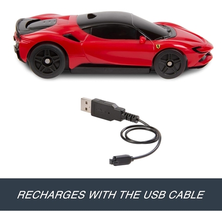 Experience speed and style with the Hot Wheels RC 1:64 scale Ferrari SF90 Stradale Assetto Fiorano remote-control car.