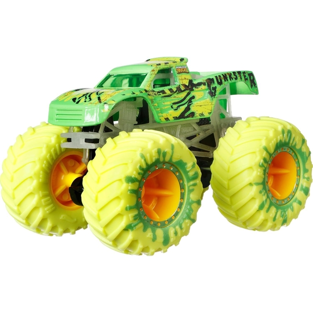 Hot Wheels Monster Trucks literally turn out the lights with 10 Glow in the Dark 1:64 scale die-cast vehicles!