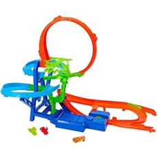 The Hot Wheels Stunt Tracks Mid-Air Crash Playset features kid-favorite racing, stunting and crashing with a motorized booster and Hot Wheels car!