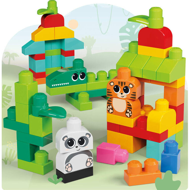 Toddlers can build and discover the wonderful world of animals with the MEGA BLOKS Animal Blocks building toy. They can match and stack the blocks to build a lion, giraffe, bird, and much more. When playtime is over, blocks can be stored inside the included reusable storage bag for easy cleanup.