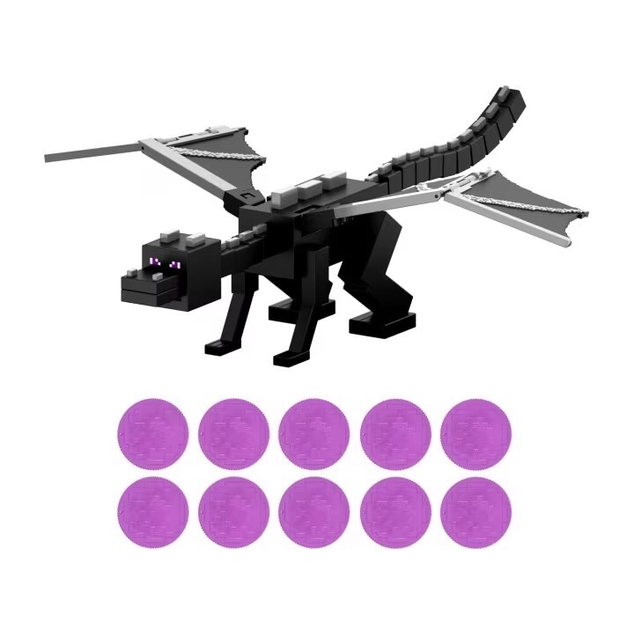 The Minecraft Dragon's Breath Attack Ender Dragon action figure breathes new excitement into playtime. The fan-favorite villain measures an impressive 21.6 inches long with a massive 20-inch wingspan! Designed to look just like the evil mob players must defeat to win the video game, it comes battle ready with 10 discs that launch from its mouth with the push of a button. Move the gargantuan Ender Dragon up and down in the air to make the wings flap. A great gift for players and fans, this hostile mob is definitely the boss.