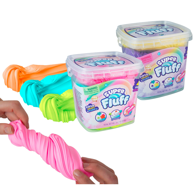 Each Super Fluff Slimi 4 Colour Bucket Set includes four individually wrapped colours of Super Fluff.