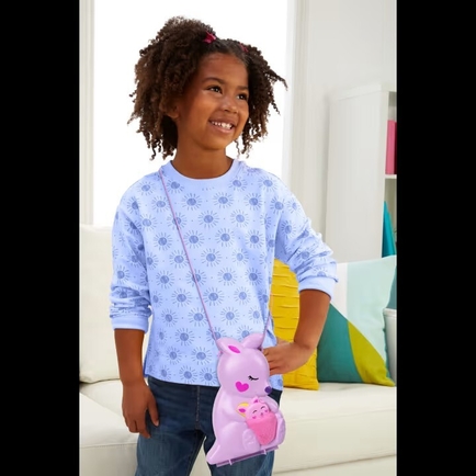 Polly Pocket wearable purse compacts make it easy to take toys -- and fun -- on the go! Each playset has an adorable exterior design and opens to reveal a multi-level adventure with lots of activities to engage imaginations. The sets offer complete storytelling with two micro dolls and 10+ accessories, some that are Pop and Swap. When it's time to travel, kids can close the set with pieces inside to store and use the strap to carry as a purse or cross-body bag. With so much play packed into one portable set, Polly Pocket purse playsets make a great gift for kids 4 years and older.