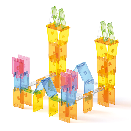 Discover the Quercetti Playform, a fun twist on the classic house of cards! Instead of flimsy cards, use colourful plastic tiles that snap together to create amazing 3D structures that stay put. Build your dream house, then magically carry it anywhere without a single tile falling. When you're ready, take it apart and start fresh—endless creative adventures await!