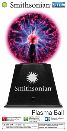 Enjoy an incredible atomic light show at your fingertips with the Smithsonian Plasma Ball. Watch what happens when atoms collide with each other and energize electrons as your fingertips control light effects. Observe how colliding atoms release energy in the form of light waves! The plasma ball also responds to sound and music and comes packaged with STEM educational content.