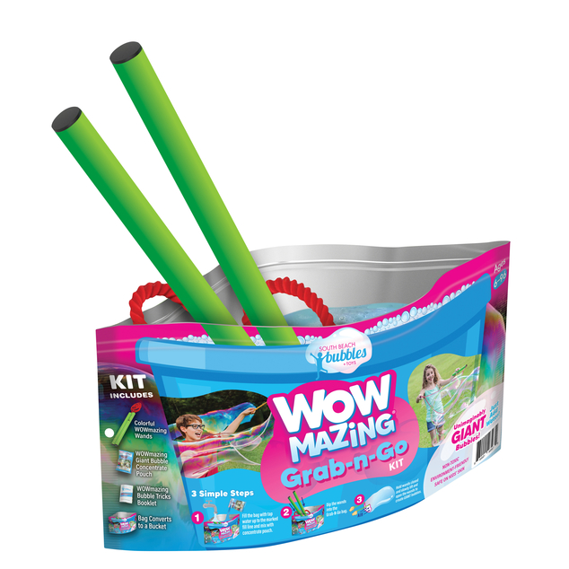 Out at park or camping without a bucket? No problem. Use the bag as your bucket! Simply follow the instructions on the package and you will be making bubbles in no time!