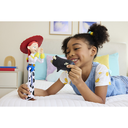 - Disney and Pixar’s Toy Story 5 comes home! Bring the adventure of Toy Story 5 home with this large-scale feature action figure of Jessie. Movie-accurate, she’s easy to handle and ready to talk!