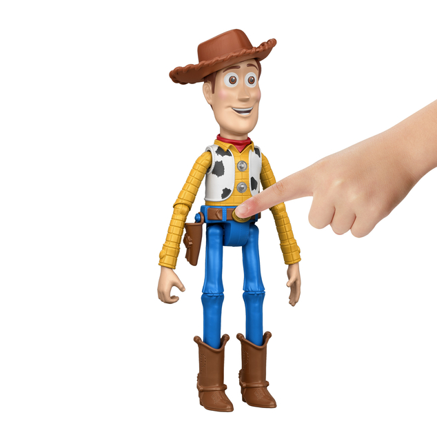 - Pose-ready! This Woody figure has multiple movable joints and movie-authentic appearance so, when he’s not talking, he can strike an adventurous pose in a Toy Story display.