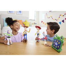 This Jessie Interactables figure, inspired by Disney and Pixar’s Toy Story 5, brings the fun and friendship of the movie home. She not only speaks phrases from the movie but also recognizes other figures in this collection by name and converses with them! Whether she’s reliving the moment Woody passed her his Sheriff’s badge, or joining the Toy Story gang for some fun, Jessie’s movie-related talk can inspire creative play. She’s got something to say to everyone - just press her Sheriff star and listen. The 8.8-inch tall talking figure is also highly posable and has a new face design with a classic Jessie expression. Colors and decorations may vary.