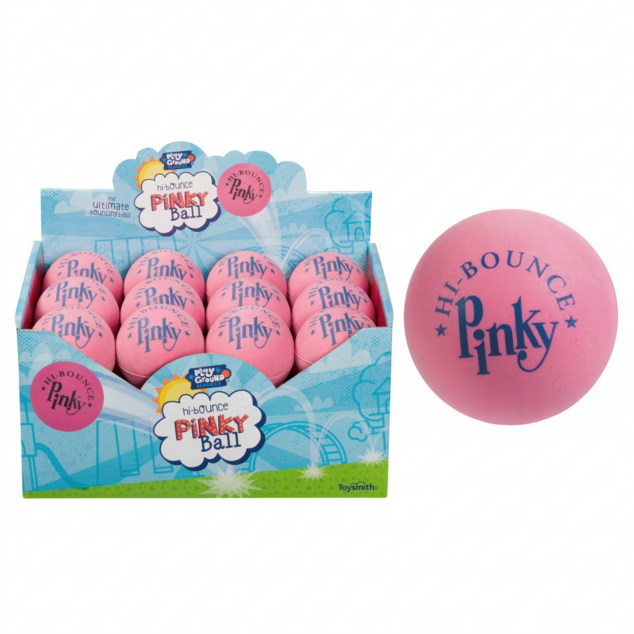 This 2.5 inch solid latex rubber ball looks, feels and bounces like the original Pinky Ball. 3yr+