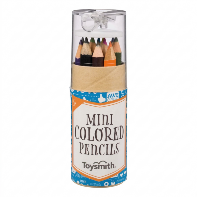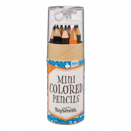 Made for little hands and wannabe artists, the Toysmith Mini Colored Pencils set comes with 12 beautiful colored pencils and 1 pencil sharpener. All pencils are neatly contained in a see-through plastic tube container with a built-in sharpener on the top. Includes pink, orange, gray, dark blue, light green, purple, light blue, yellow, black, dark green, red, and brown colored pencils. A popular item year-round, 24 Mini Colored Pencils tubes come inside a colorful display case.